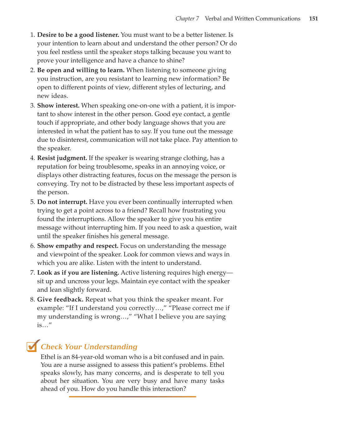 3. Show interest. When speaking one-on-one with a patient, it is impor-