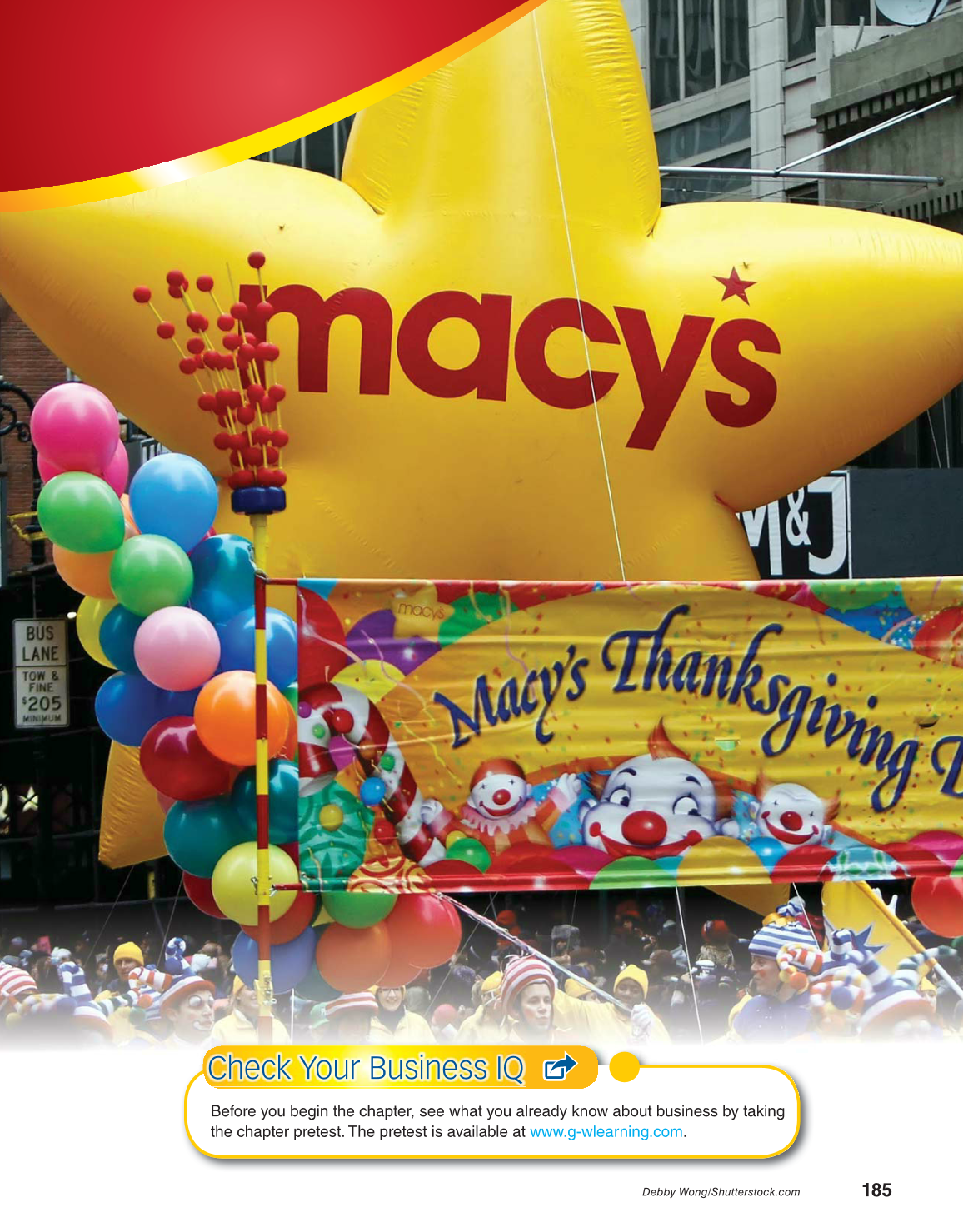 Debby Wong/Shutterstock.com Check Your Business IQ Before you begin the chapter, see what you already know about business by taking the chapter pretest. The pretest is available at www.g-wlearning.com. 185