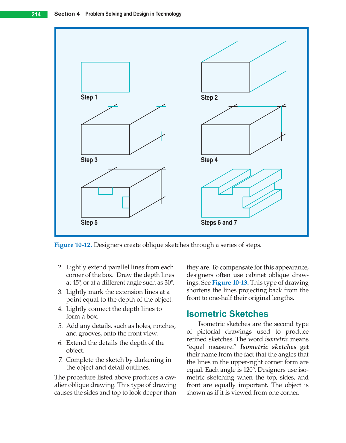 Figure 10-12. Designers create oblique sketches through a series of steps.
