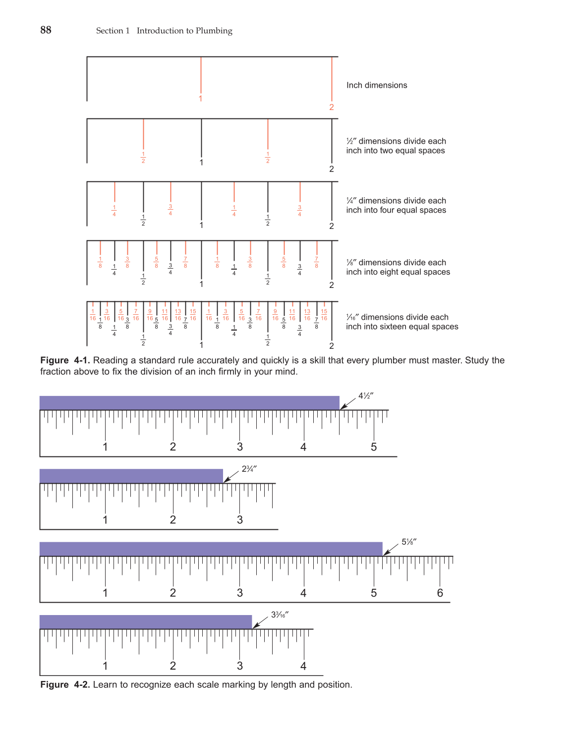 Figure 4-1. Reading a standard rule accurately and quickly is a skill that every plumber must master. Study the