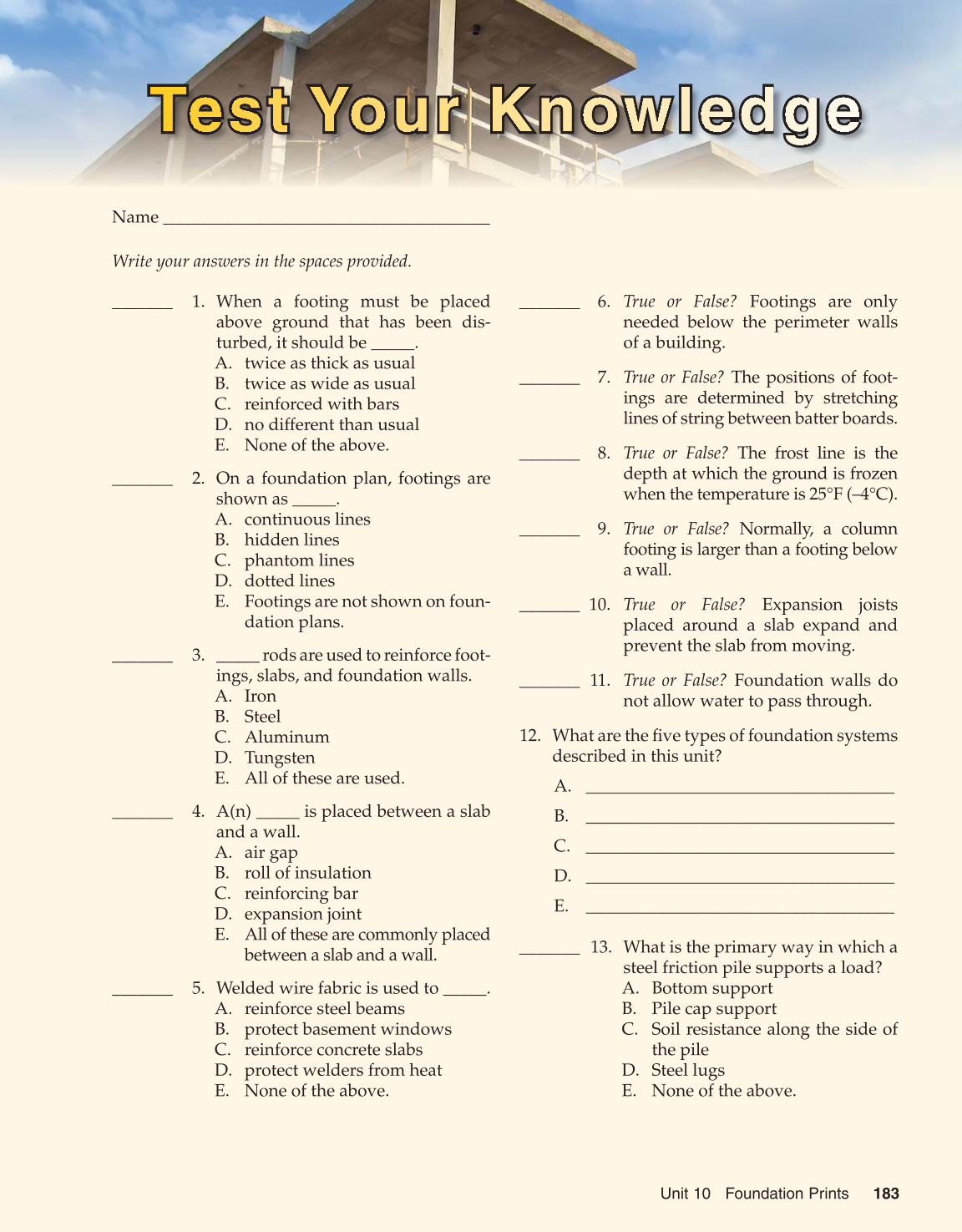 _______ 10. True or False? Expansion joists