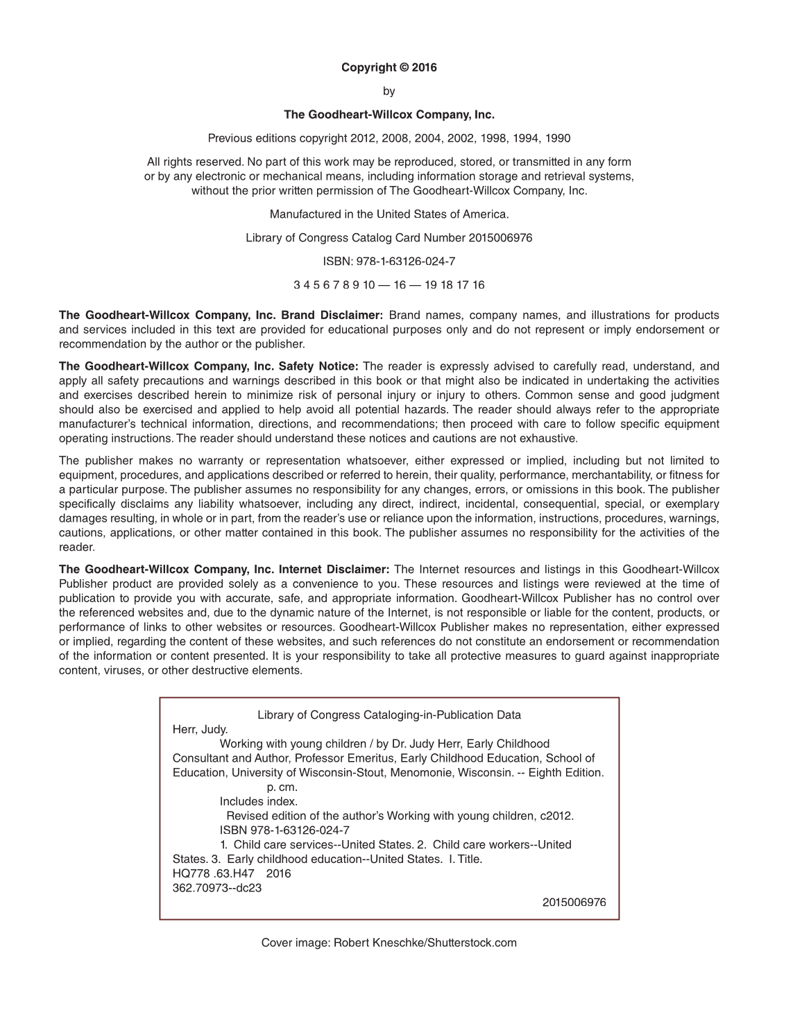 publication to provide you with accurate, safe, and appropriate information. Goodheart-Willcox Publisher has no control over