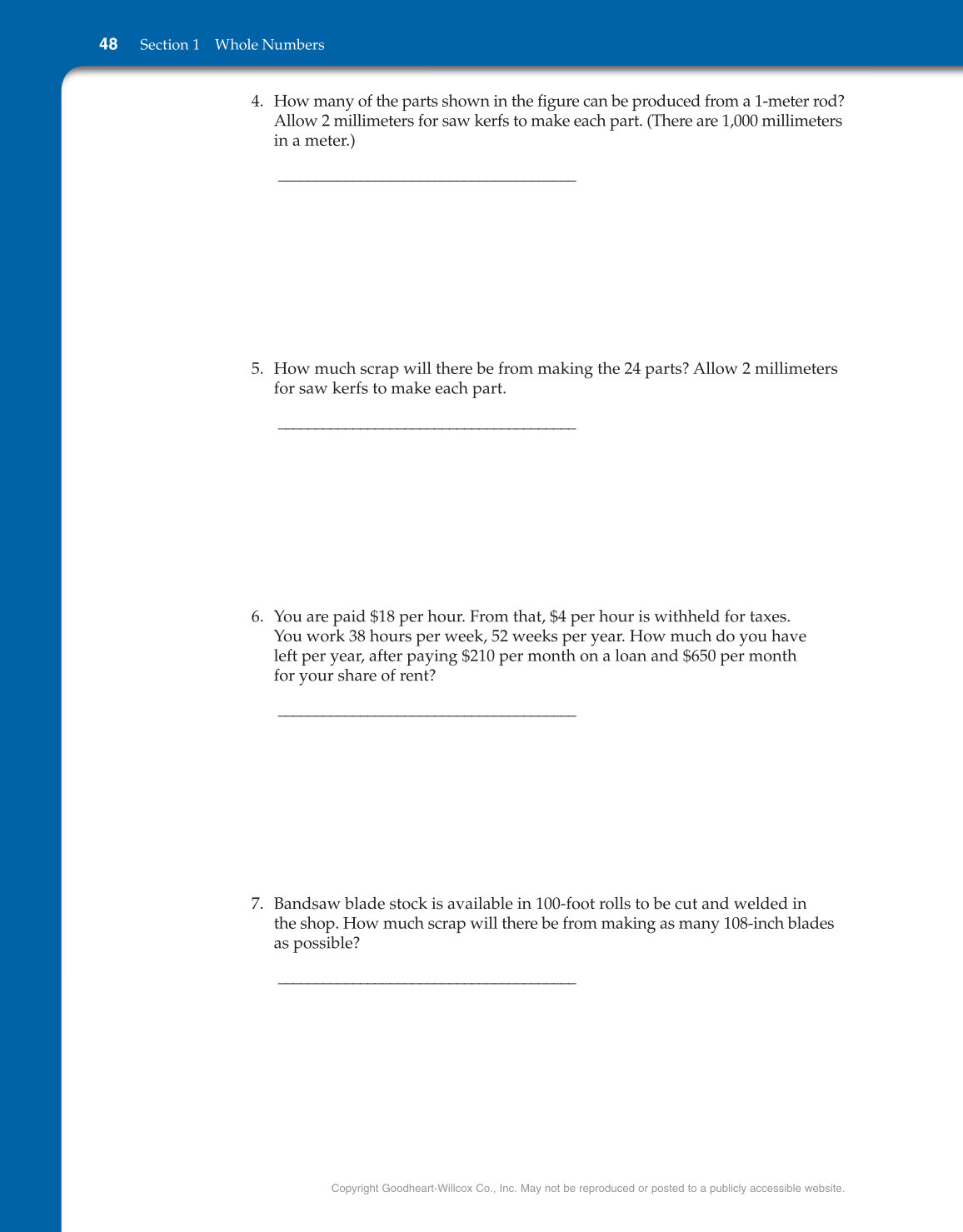 4. How many of the parts shown in the fi gure can be produced from a 1-meter rod?