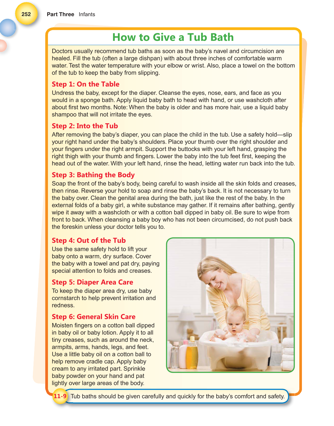 11-9 Tub baths should be given carefully and quickly for the baby’s comfort and safety.