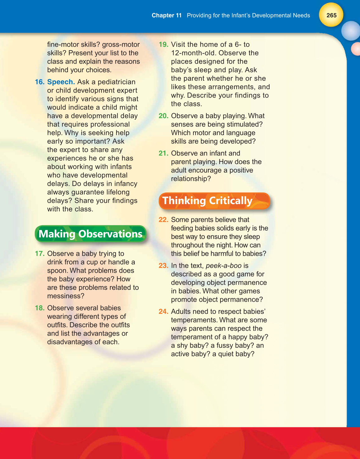 265 Chapter 11 Providing for the Infant’s Developmental Needs