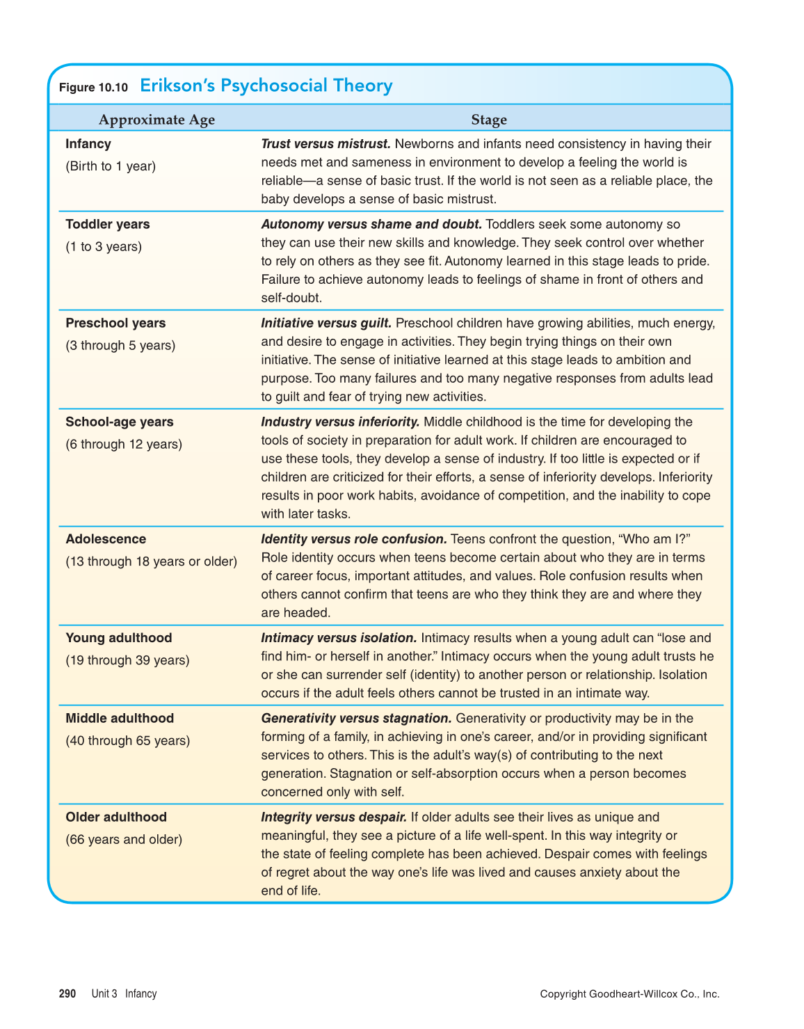 Identity versus role confusion. Teens confront the question, “Who am I?”