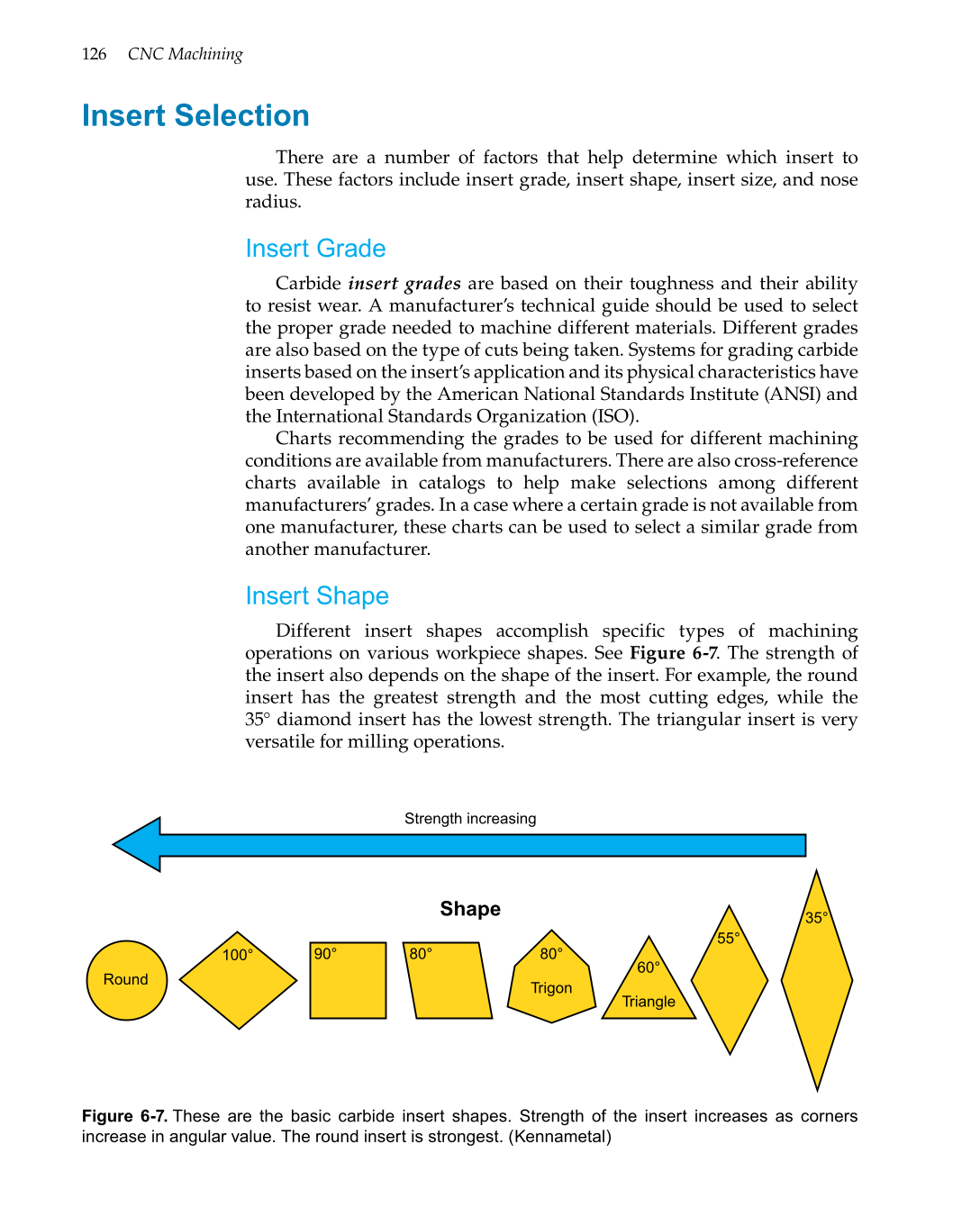 Figure 6-7. These are the basic carbide insert shapes. Strength of the insert increases as corners