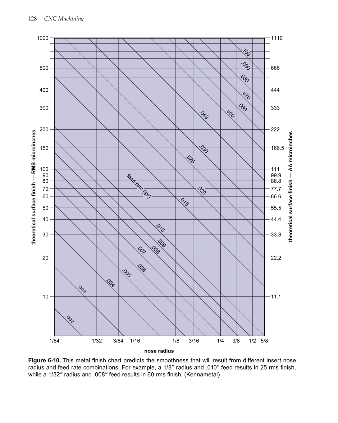 Figure 6-10. This metal finish chart predicts the smoothness that will result from different insert nose
