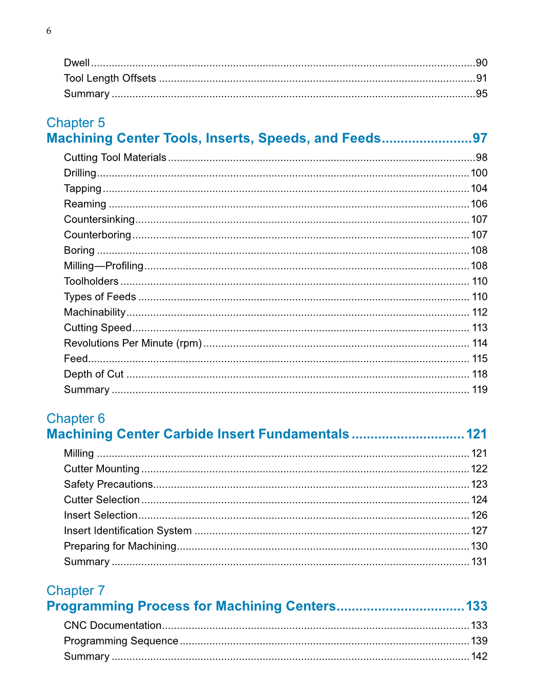 Machining Center Tools, Inserts, Speeds, and Feeds ........................97