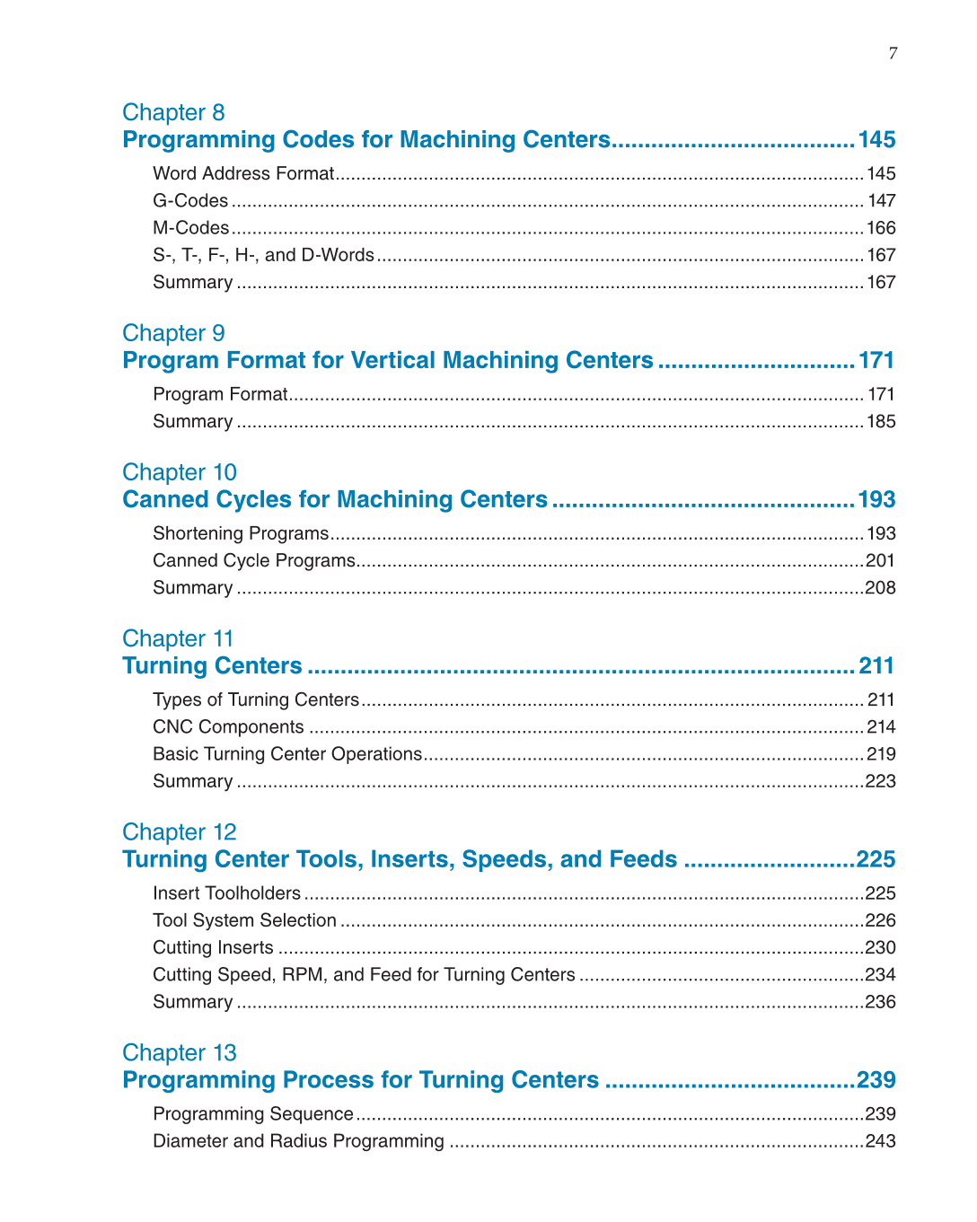 Turning Centers ...................................................................................211