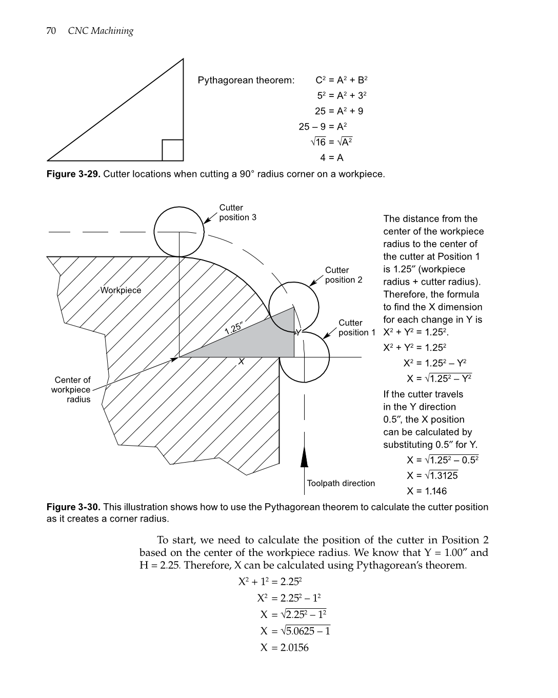 Figure 3-30. This illustration shows how to use the Pythagorean theorem to calculate the cutter position