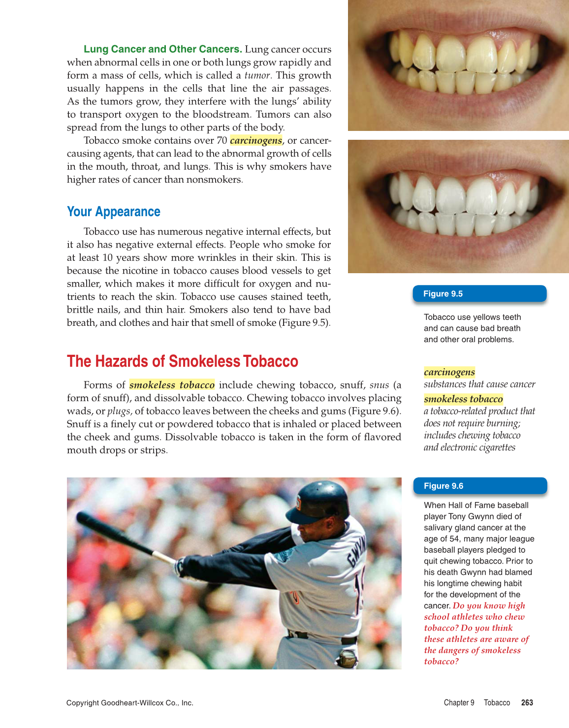 wads, or plugs, of tobacco leaves between the cheeks and gums (Figure 9.6).