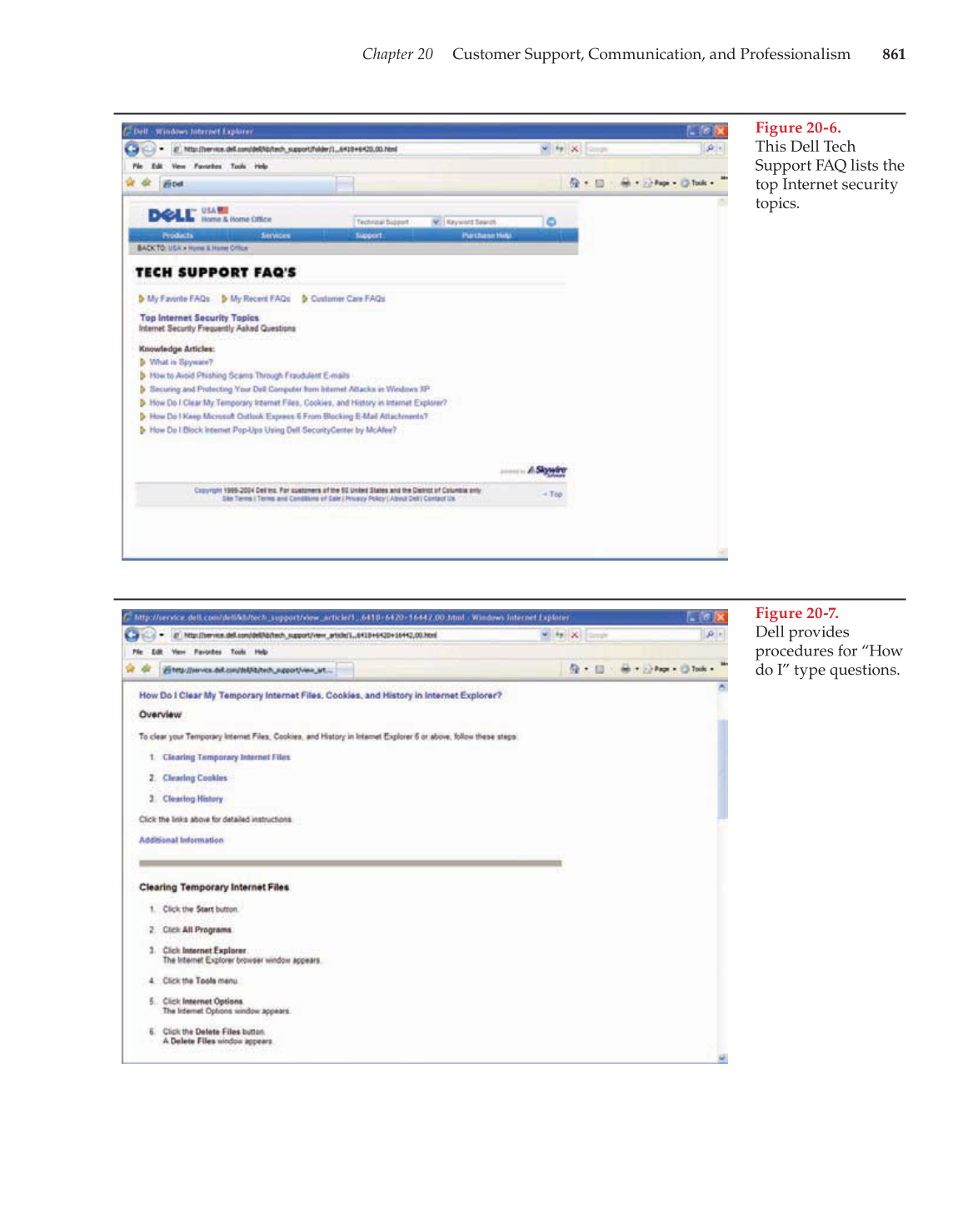 Chapter 20 Customer Support, Communication, and Professionalism 861 Figure 20-6. This Dell Tech Support FAQ lists the top Internet security topics. Figure 20-7. Dell provides procedures for “How do I” type questions.