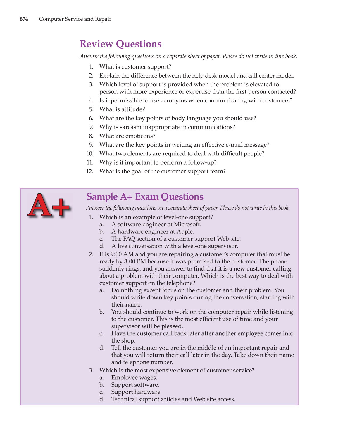 2. It is 9:00 AM and you are repairing a customer’s computer that must be