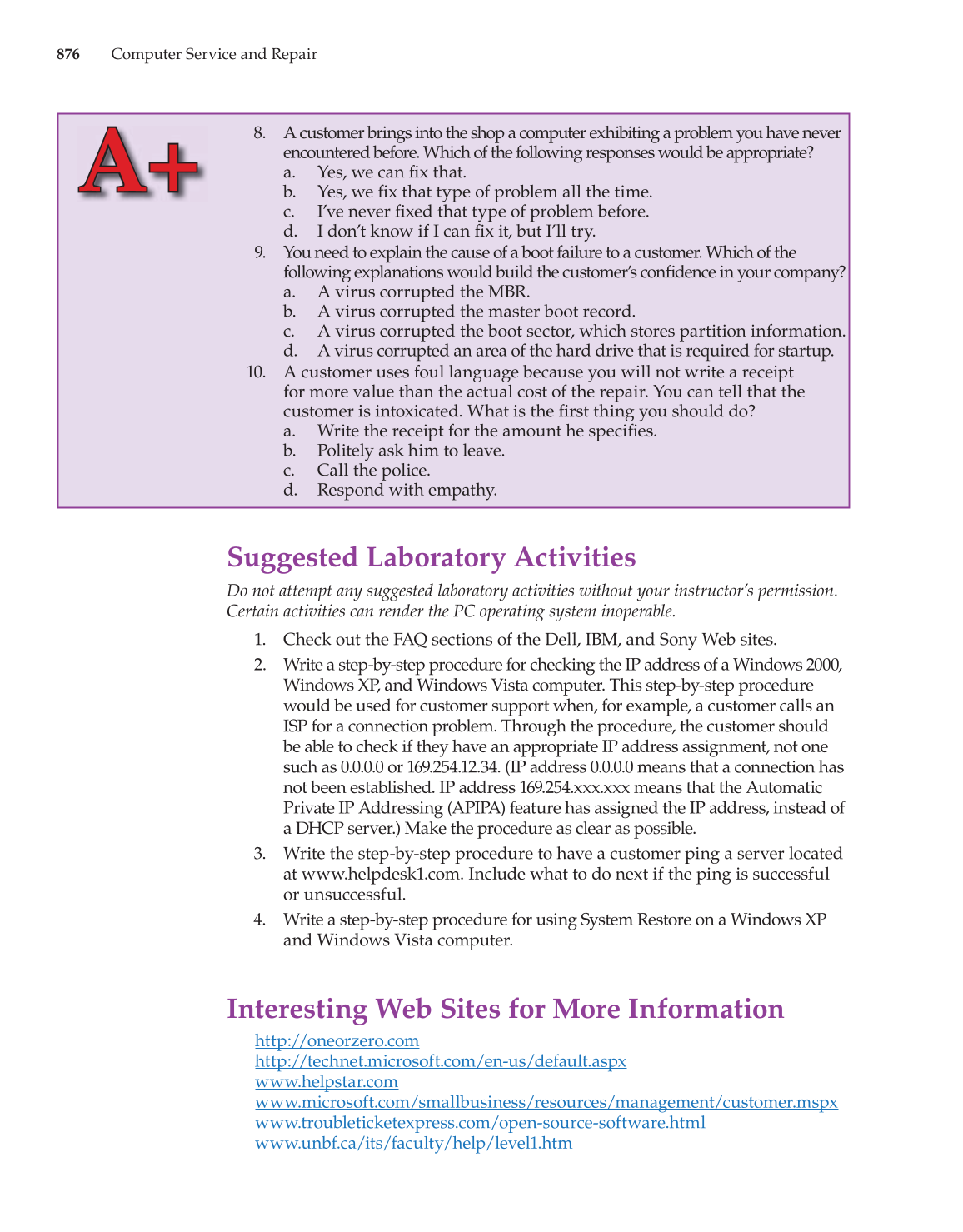 8. A customer brings into the shop a computer exhibiting a problem you have never
