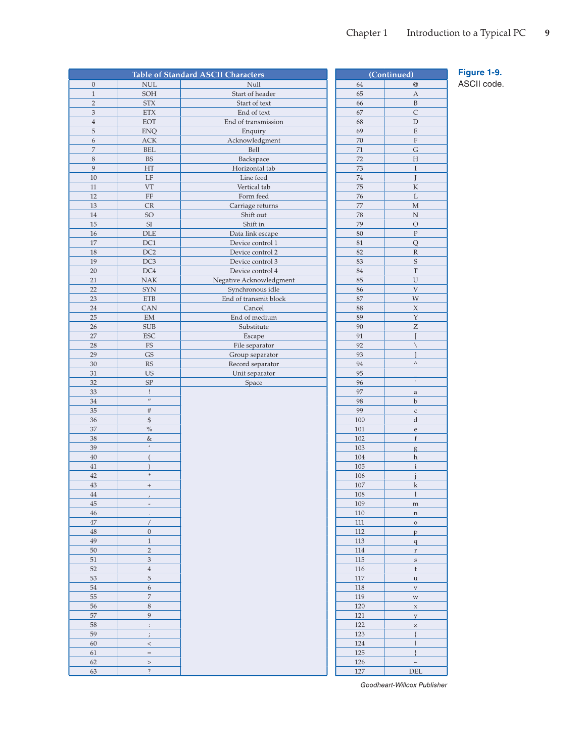 Table of Standard ASCII Characters (Continued)