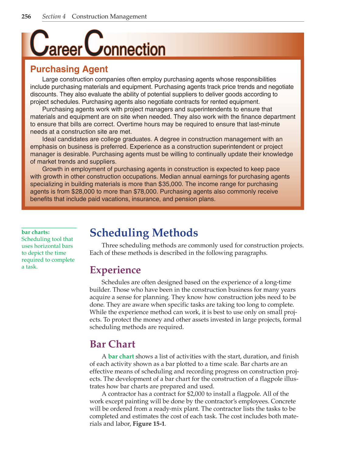 ects. The development of a bar chart for the construction of a flagpole illus-