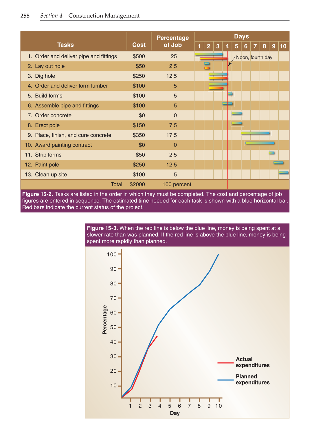 Figure 15-2. Tasks are listed in the order in which they must be completed. The cost and percentage of job