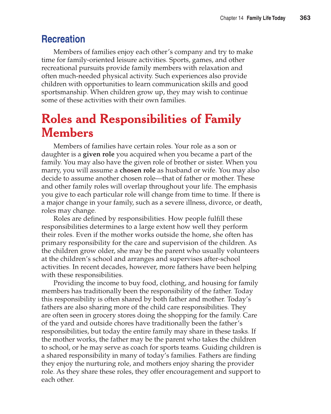 responsibilities, but today the entire family may share in these tasks. If