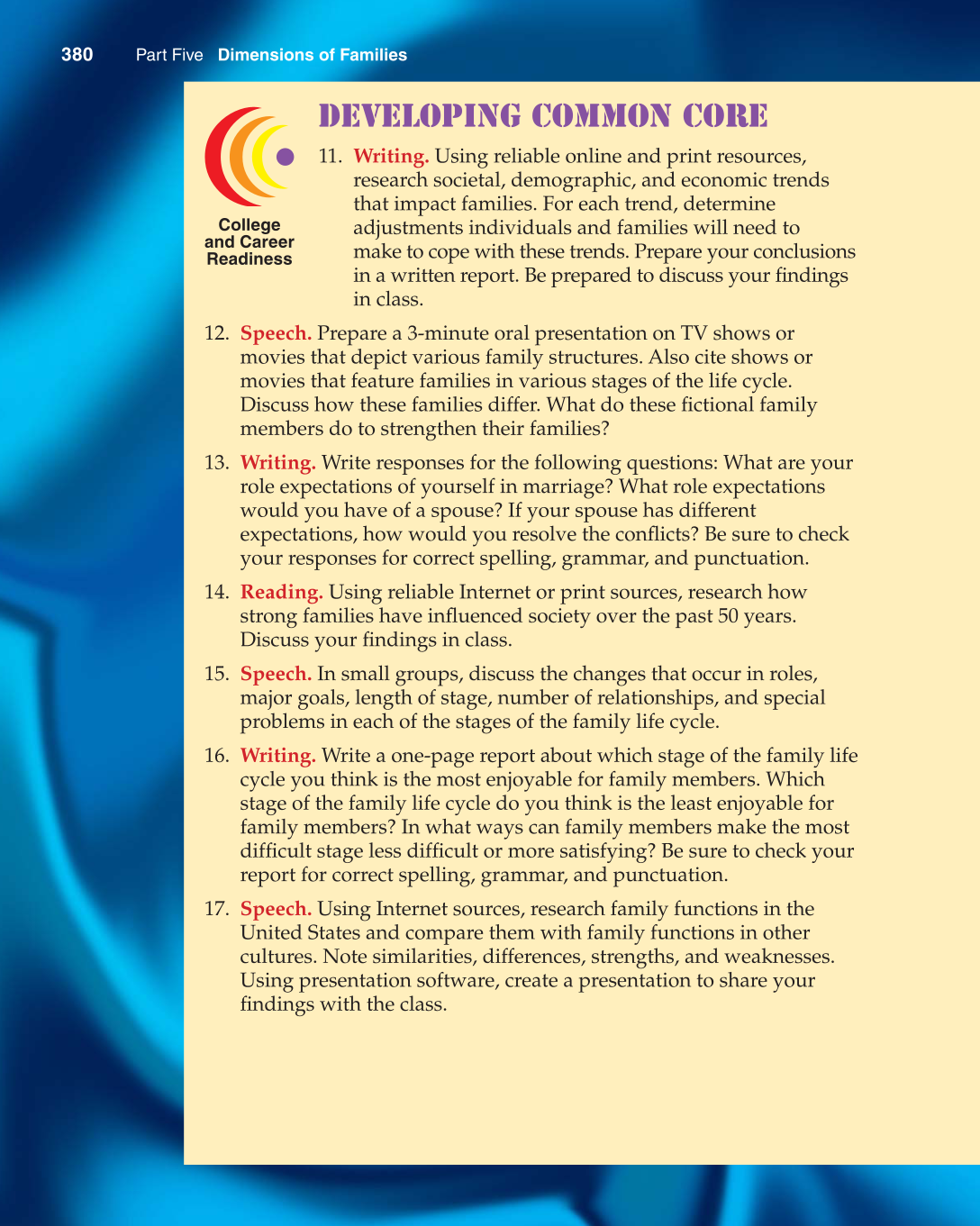 16. Writing. Write a one-page report about which stage of the family life