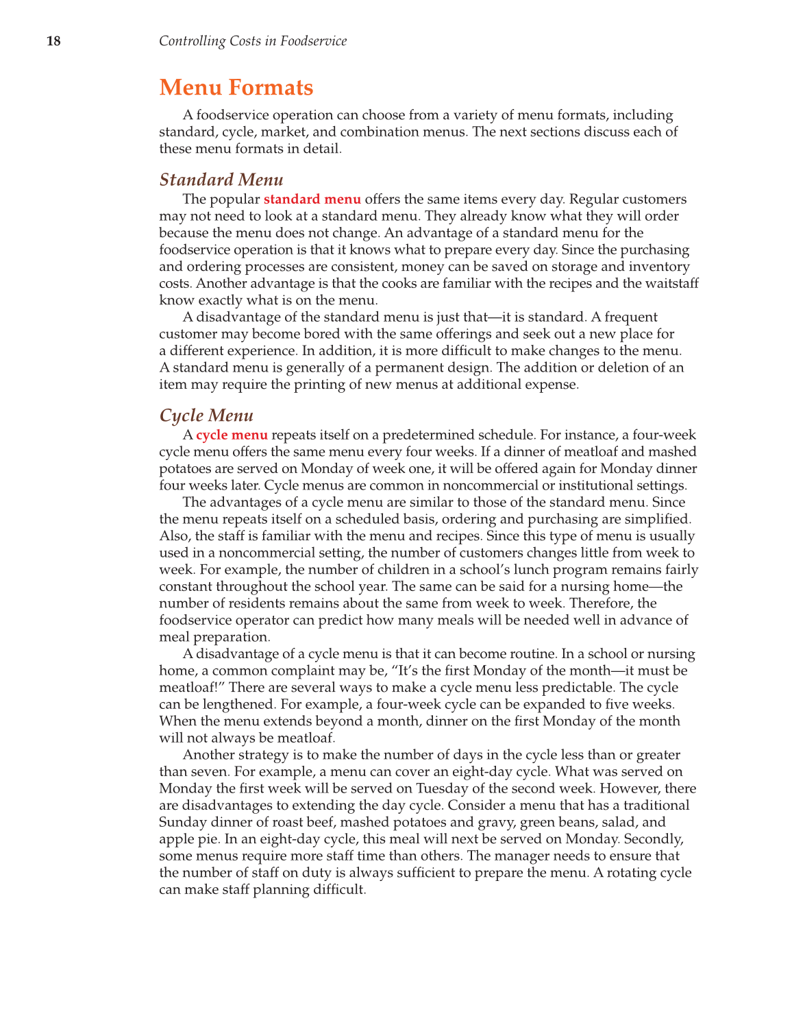 A foodservice operation can choose from a variety of menu formats, including