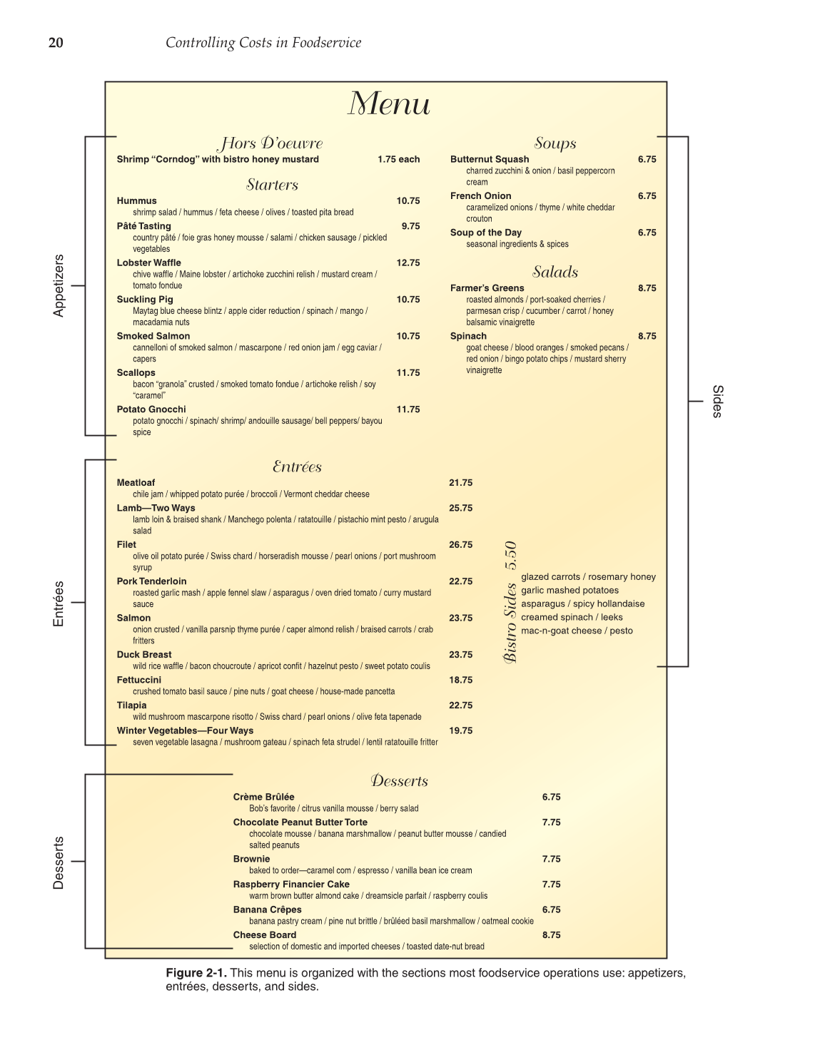 Figure 2-1. This menu is organized with the sections most foodservice operations use: appetizers,