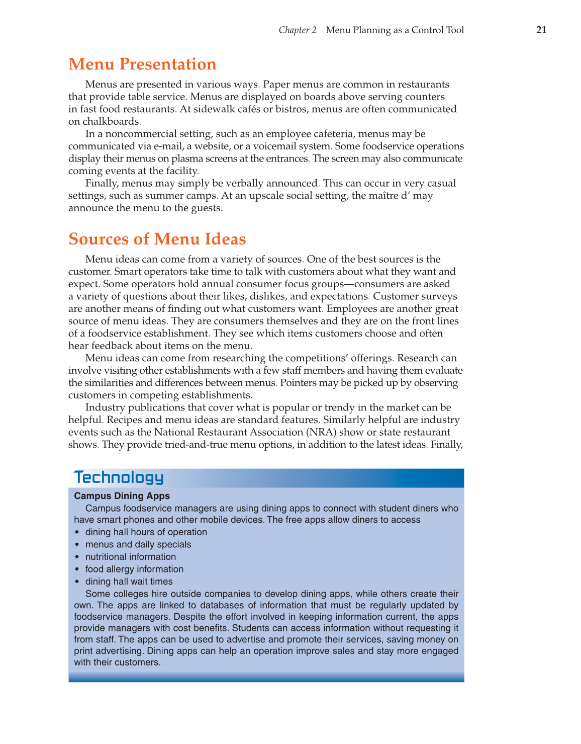 foodservice managers. Despite the effort involved in keeping information current, the apps