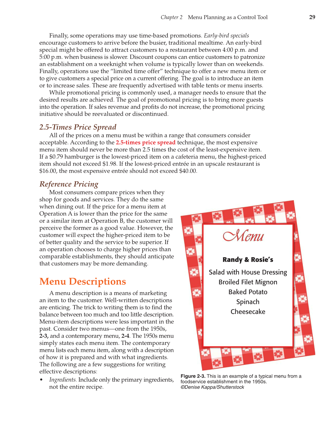 2-3, and a contemporary menu, 2-4. The 1950s menu