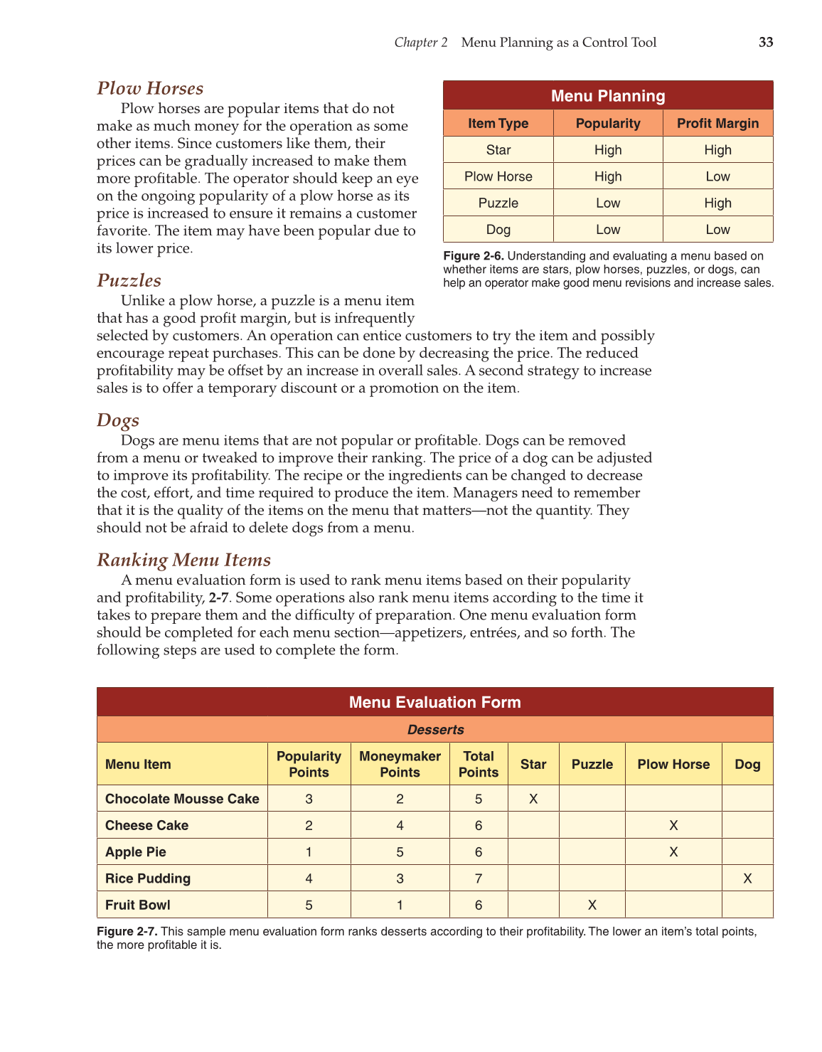and profi tability, 2-7. Some operations also rank menu items according to the time it