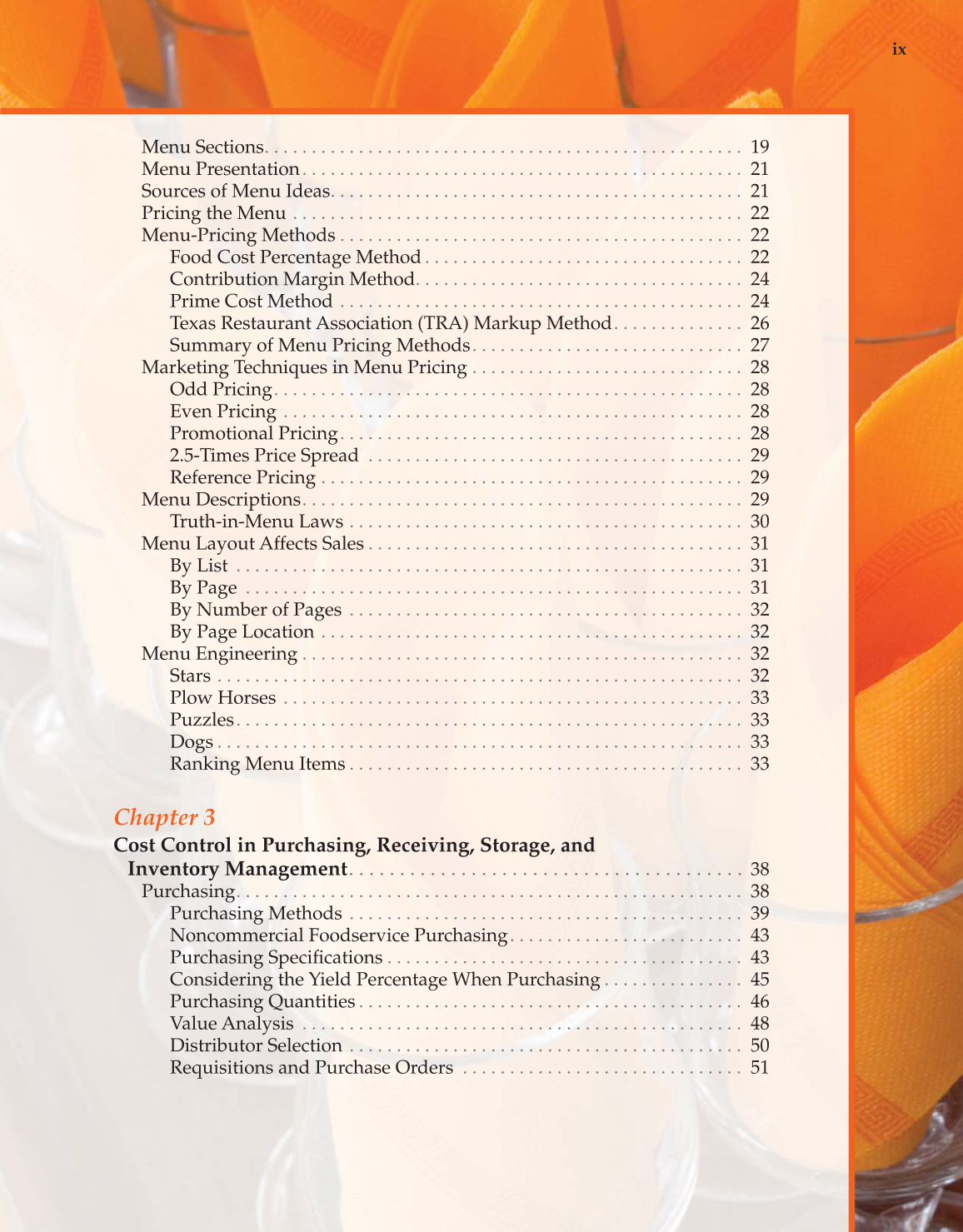Marketing Techniques in Menu Pricing . . . . . . . . . . . . . . . . . . . . . . . . . . . . . 28
