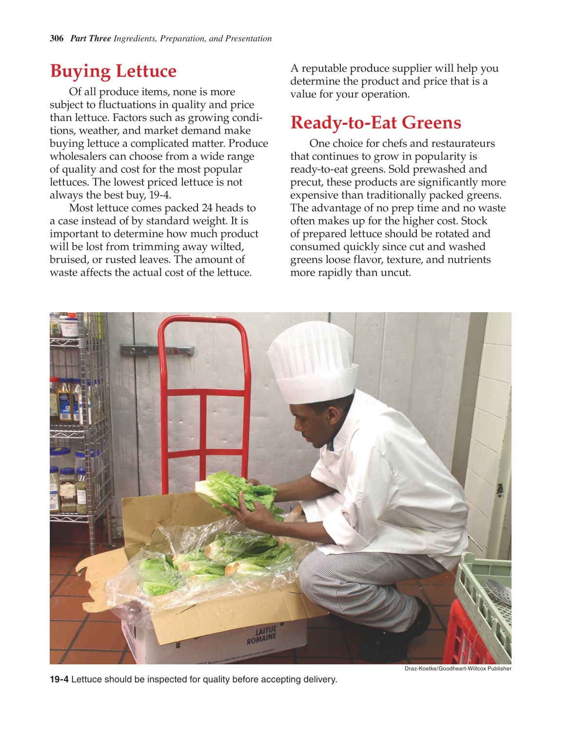 19-4 Lettuce should be inspected for quality before accepting delivery.