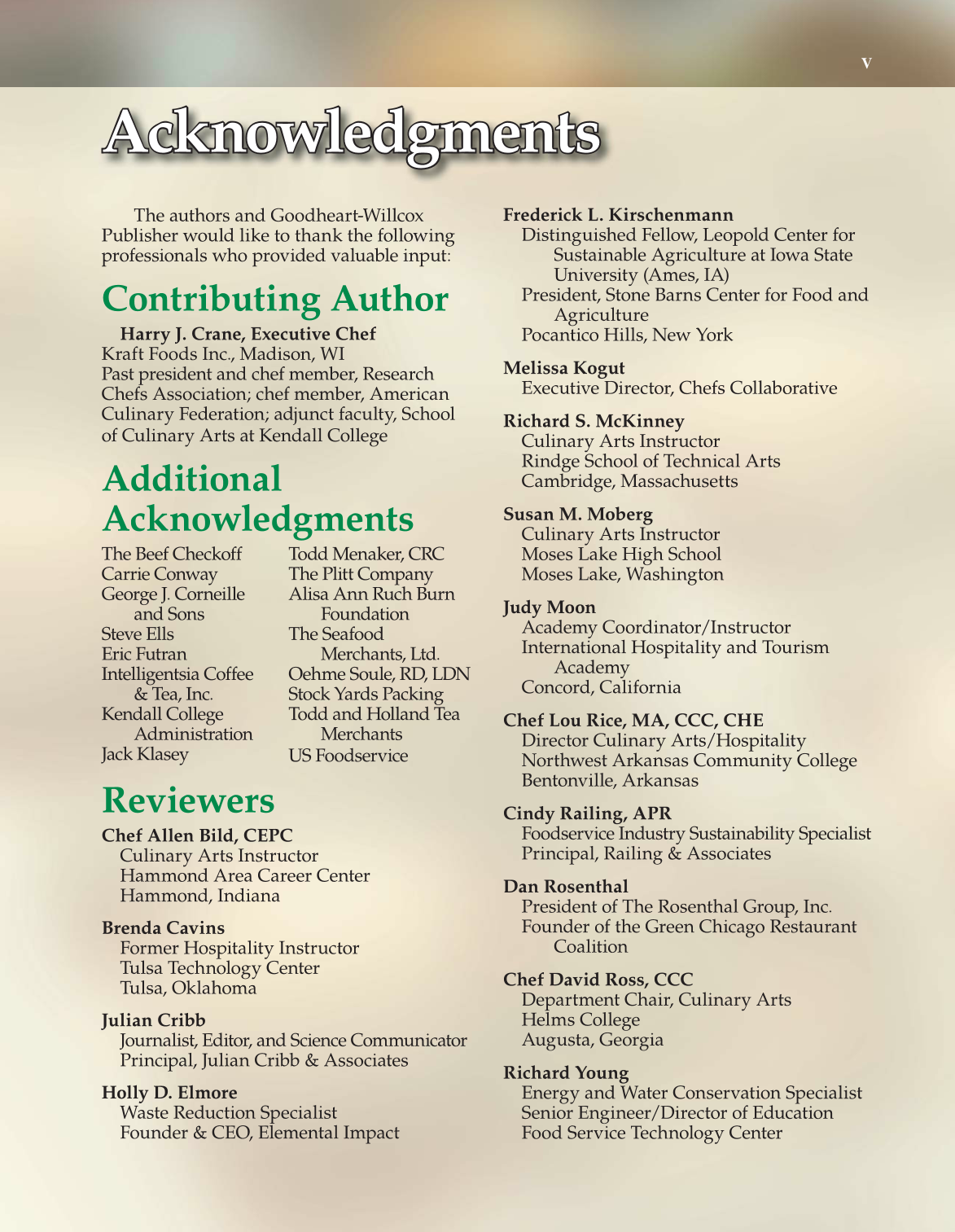 Culinary Federation; adjunct faculty, School