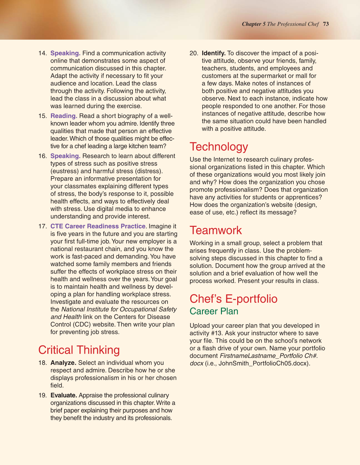 Chapter 5 The Professional Chef 73