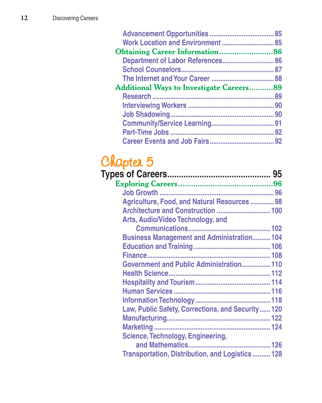 Exploring Careers ............................................96