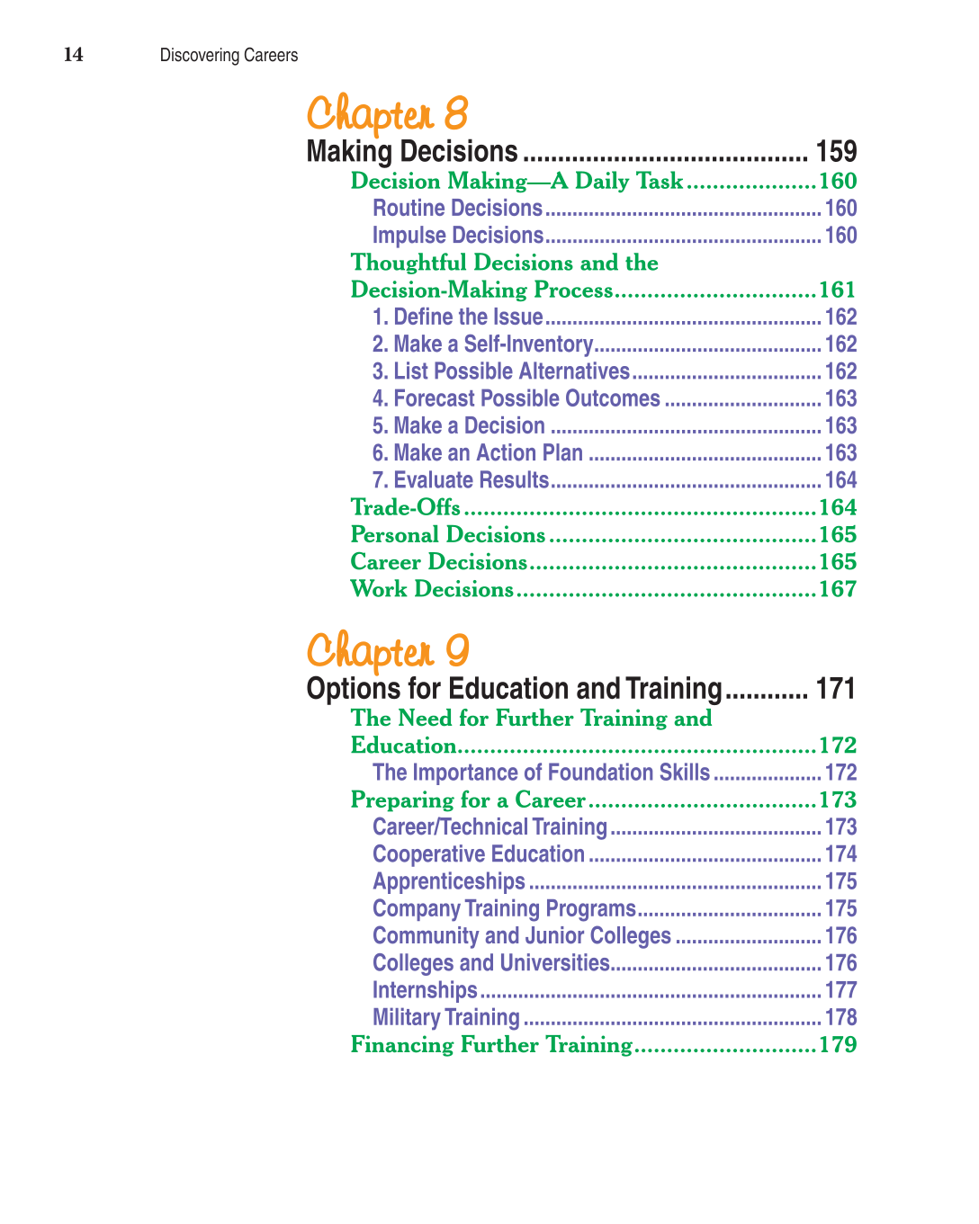 Preparing for a Career ...................................173