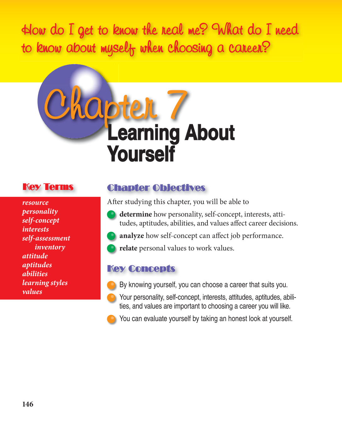Your personality, self-concept, interests, attitudes, aptitudes, abili-