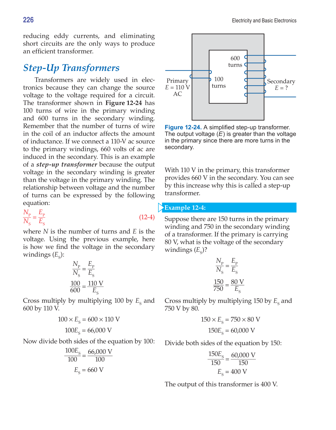 Figure 12-24. A simplifi ed step-up transformer.