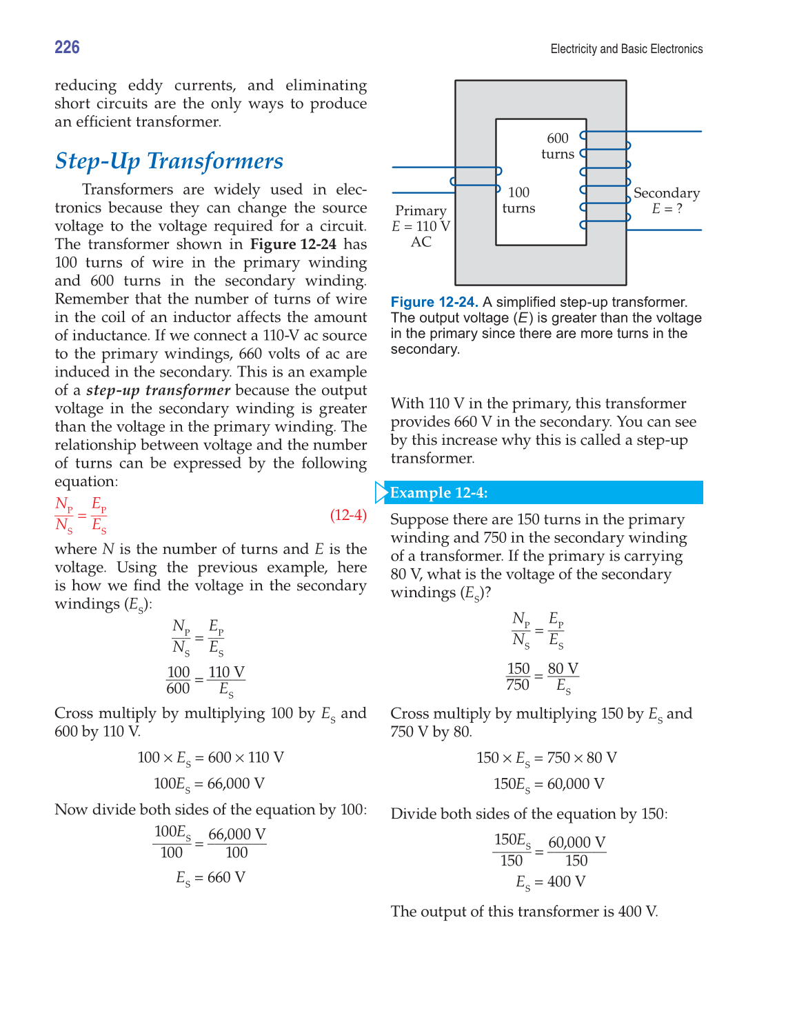 Figure 12-24. A simplifi ed step-up transformer.