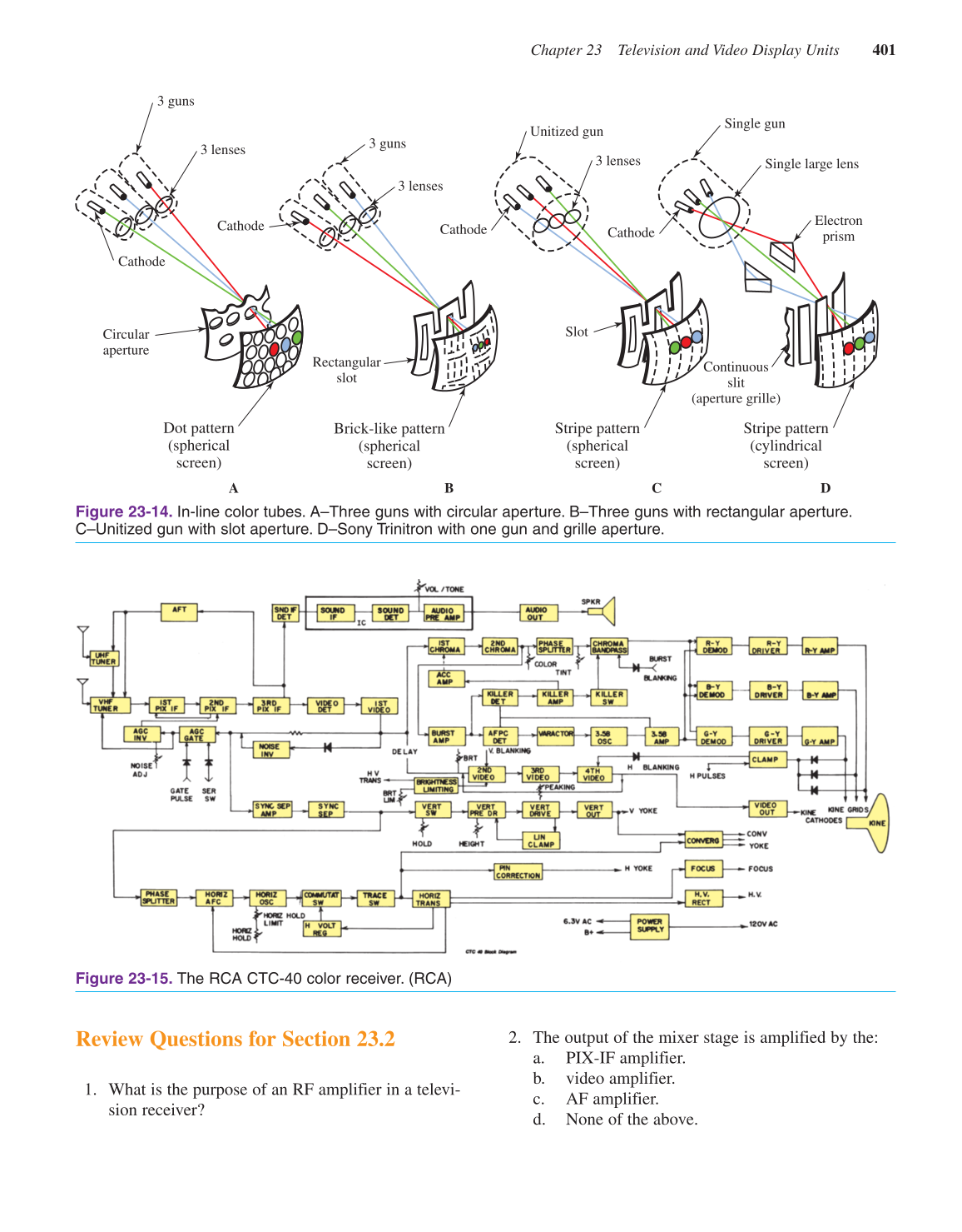 C–Unitized gun with slot aperture. D–Sony Trinitron with one gun and grille aperture.