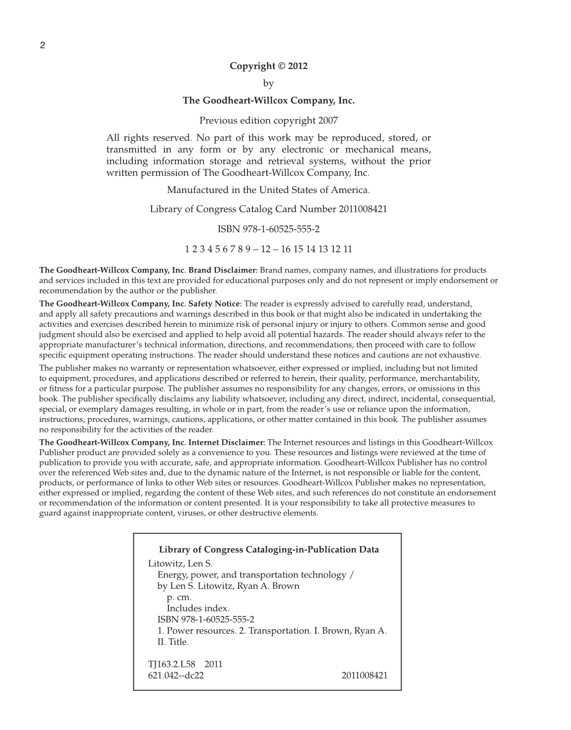 The Goodheart-Willcox Company, Inc. Safety Notice: The reader is expressly advised to carefully read, understand,