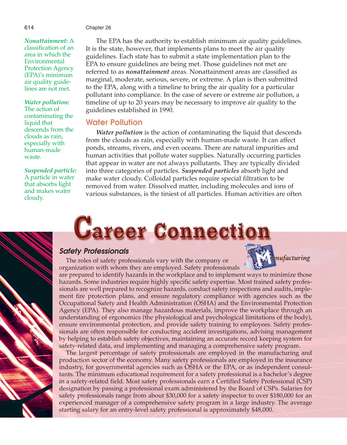 ensure environmental protection, and provide safety training to employees. Safety profes-