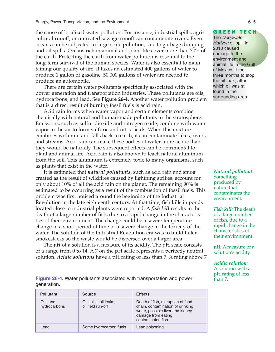 hydrocarbons, and lead. See Figure 26-4. Another water pollution problem
