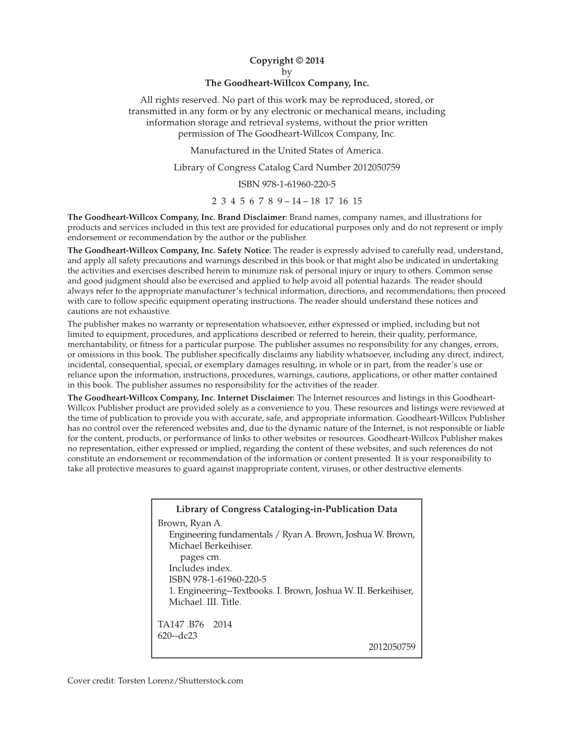 The Goodheart-Willcox Company, Inc. Safety Notice: The reader is expressly advised to carefully read, understand,