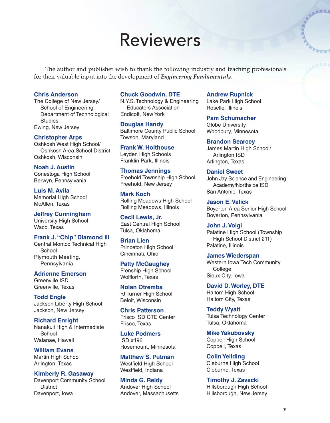 for their valuable input into the development of Engineering Fundamentals.
