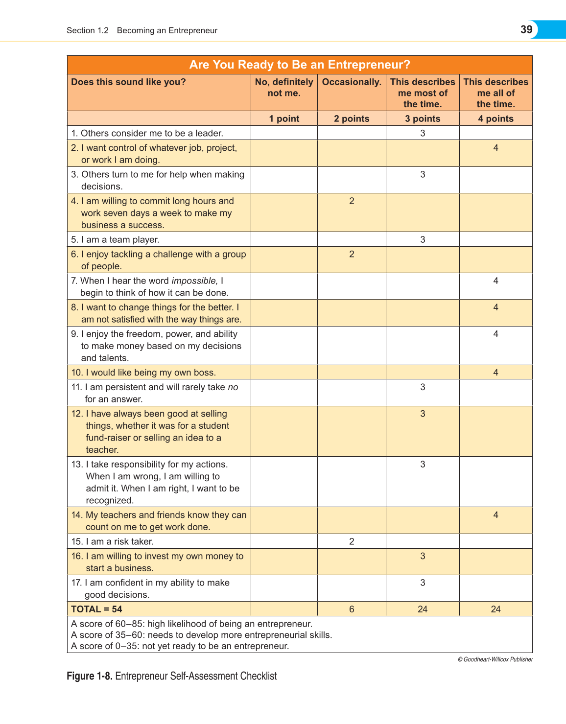 Figure 1-8. Entrepreneur Self-Assessment Checklist