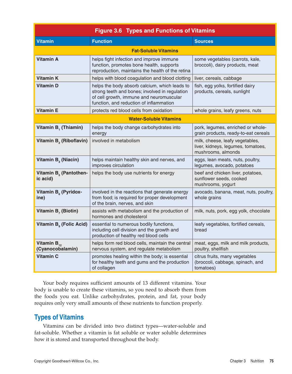 Figure 3.6 Types and Functions of Vitamins