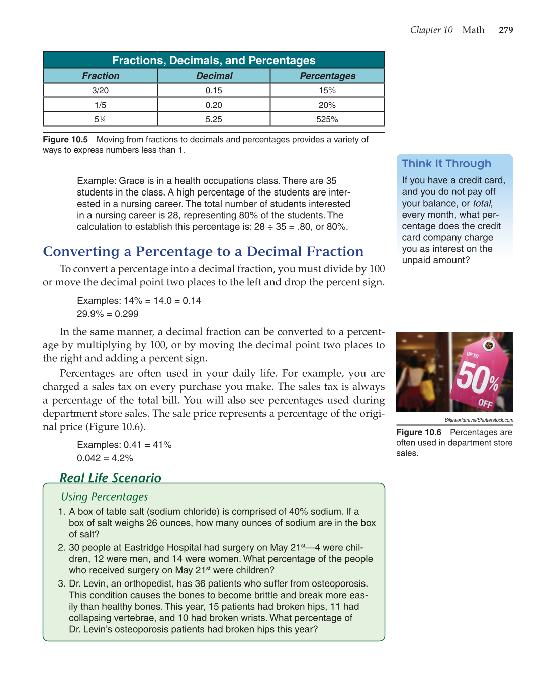 Figure 10.5 Moving from fractions to decimals and percentages provides a variety of