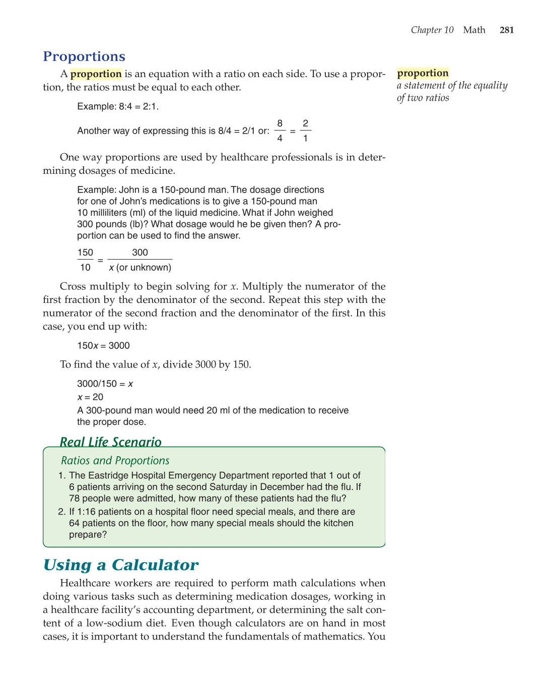 A proportion is an equation with a ratio on each side. To use a propor-