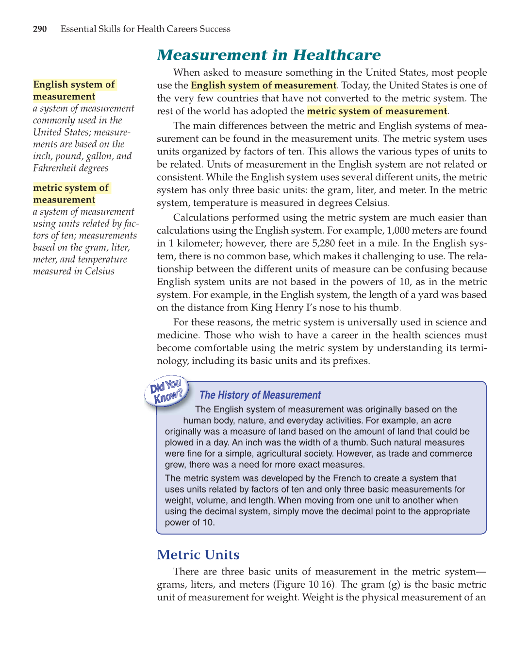 grams, liters, and meters (Figure 10.16). The gram (g) is the basic metric