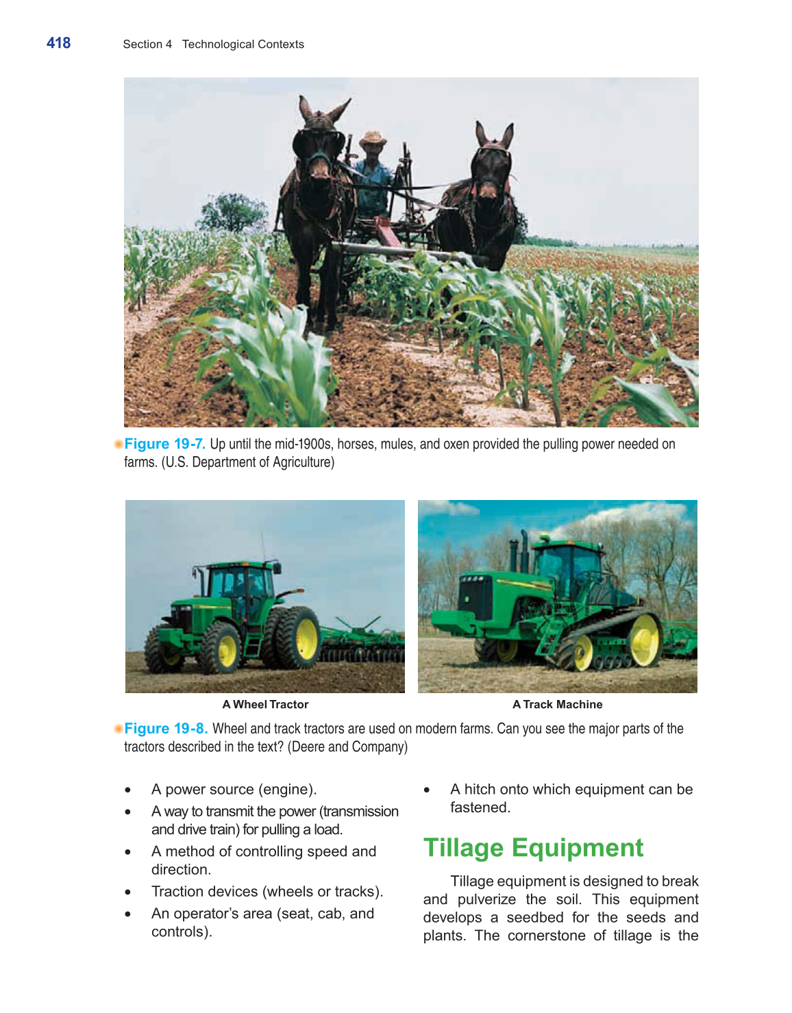Figure 19-8. Wheel and track tractors are used on modern farms. Can you see the major parts of the